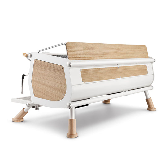 Cafetera espresso automática Sanremo 3 grupos blanca con madera Cafe Racer